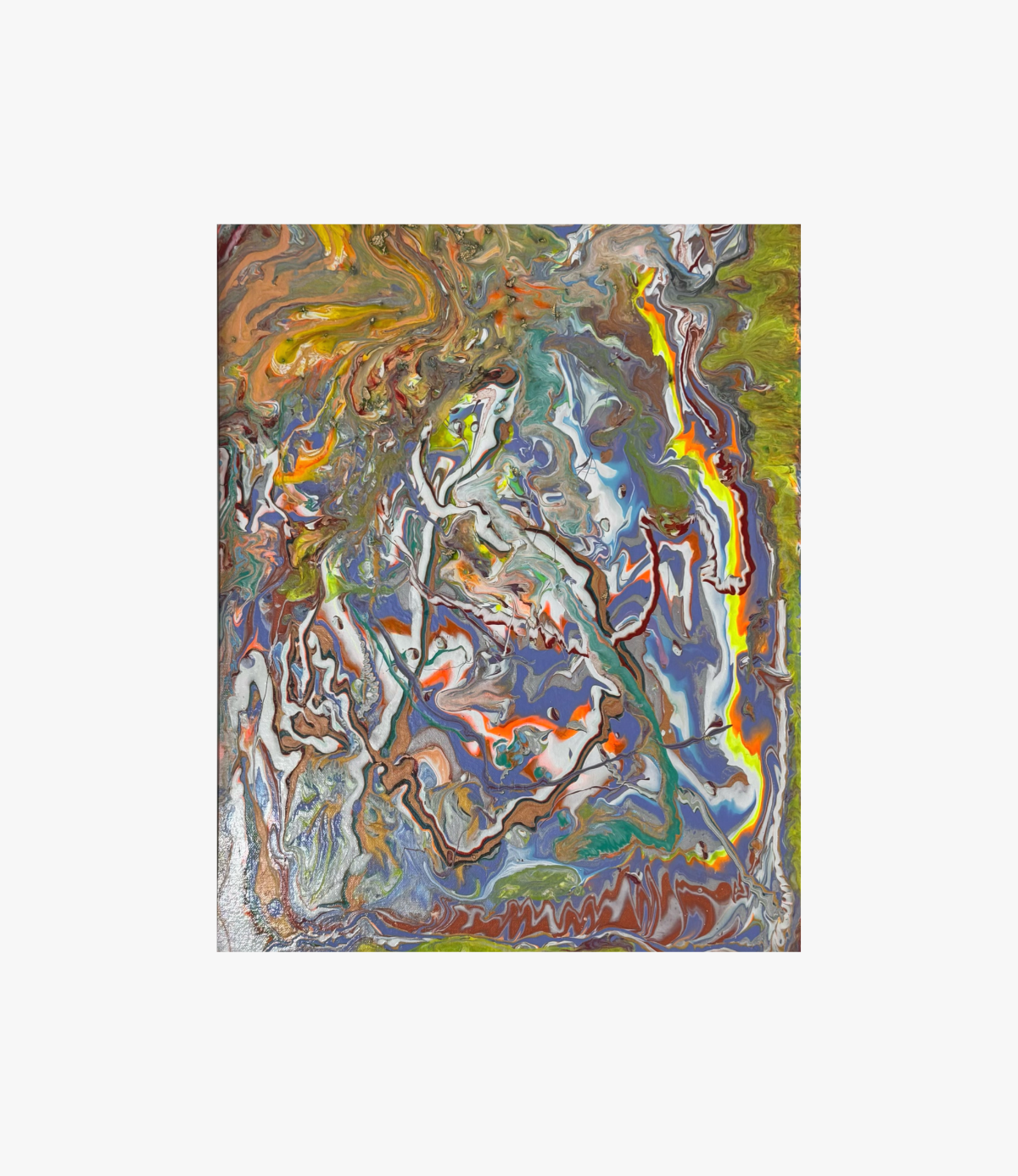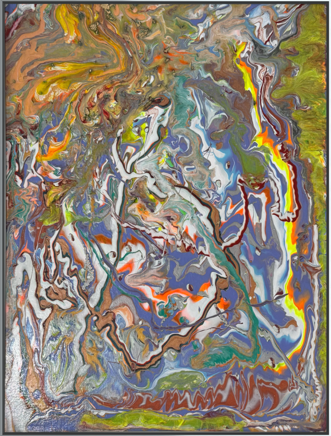 Formed through layered pours of fluid acrylic, Painted Canyon emerged as pigments moved under gravity, separating and settling across the surface. The patterns recall eroded stone, mineral veins, and channels carved by water and heat, suggesting forces working beneath the surface.